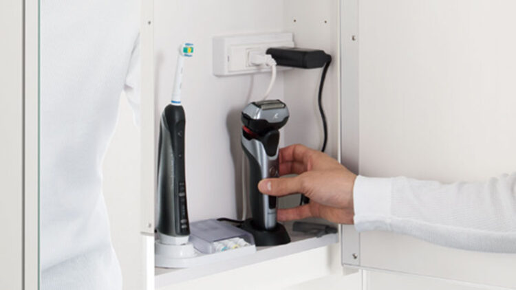 ミラーを閉じて電動歯ブラシや電動髭剃りなどを充電できるので、整理された洗面空間になります。