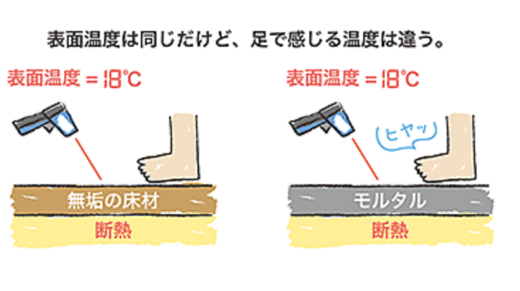 断熱性の高い家では、無垢の木とコンクリートや石の表面温度は同じ!
