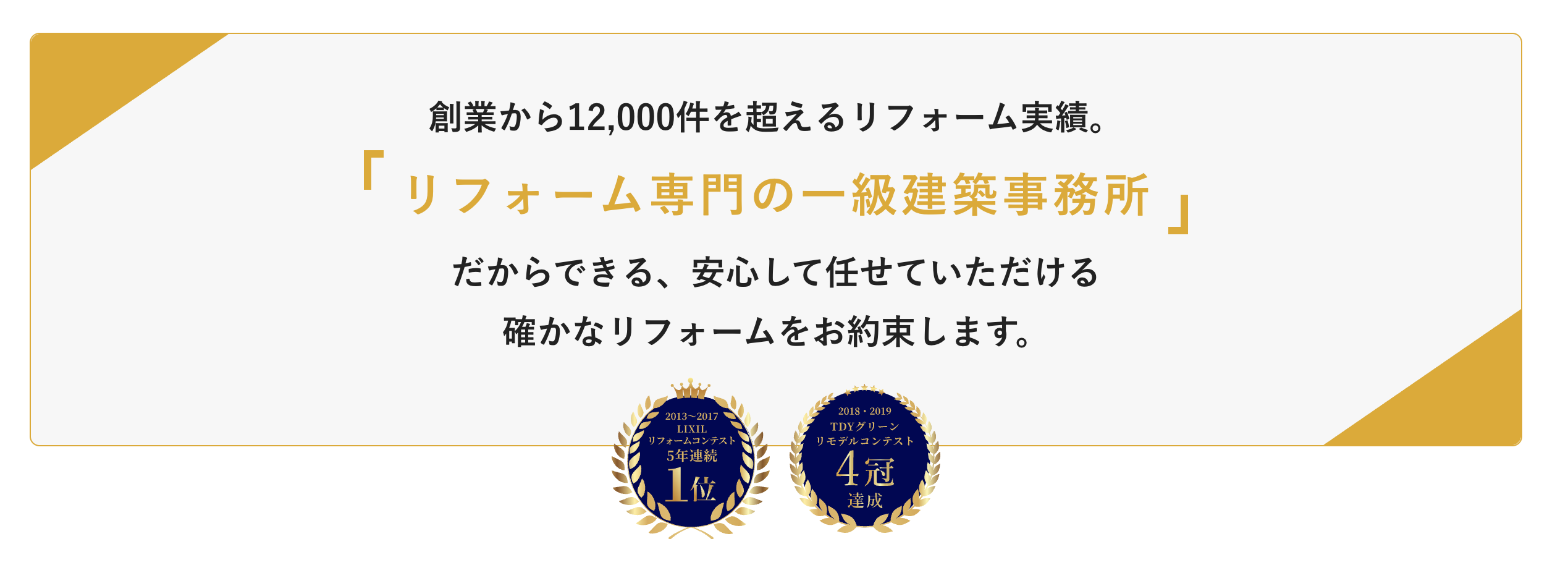 リフォーム専門の一級建築事務所として、累計12000件を超える施工実績があります。
