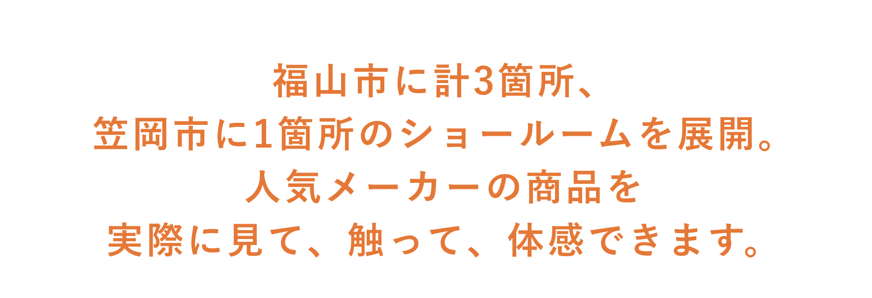 イマガワリフォームでは、福山市に3箇所、笠岡市に1箇所の合計4箇所のショールームを展開しています。ショールームには、こだわりのインテリアを配置した快適な打ち合わせスペースや、実際の施工事例が掲載されたパンフレットなどをご覧いただけるコーナーをご用意しています。
