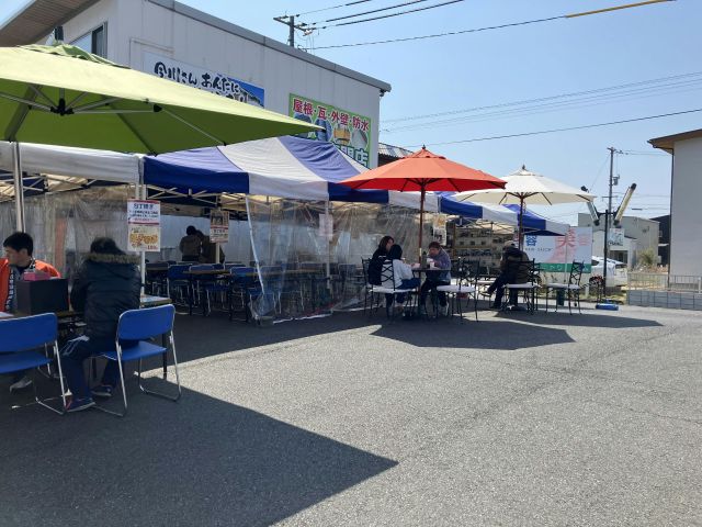 飲食コーナーでは、揚げたてのミンチカツや焼きそばをご用意し、多くの方にご好評いただきました。外の席でくつろぎながら食事を楽しんでいただく様子も見られ、終始にぎやかな雰囲気でした。