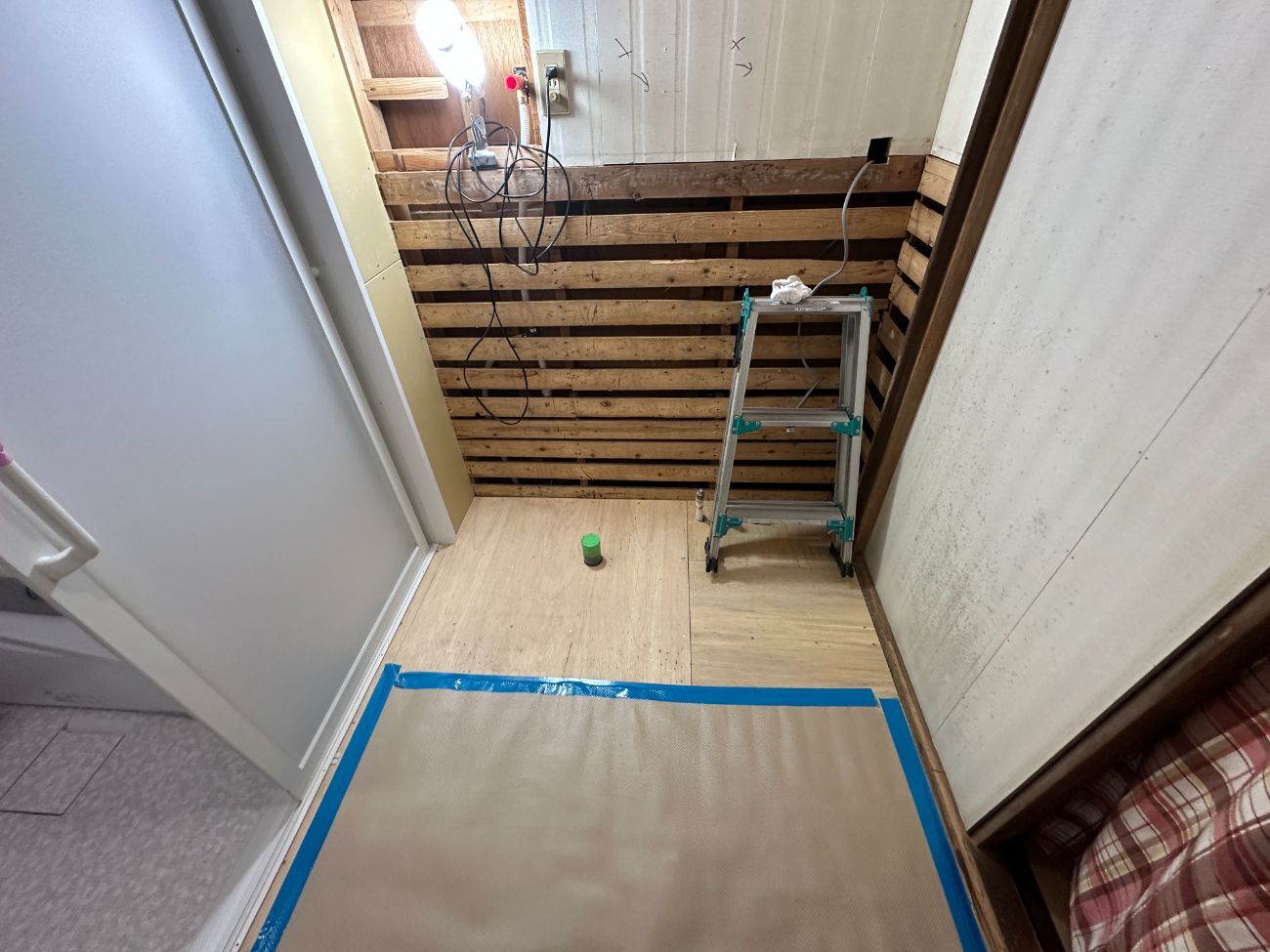 次は脱衣所の大工工事にはいりました👷もともと設置されていた設備をすべて取り除き、空間をまっさらな状態へ。
