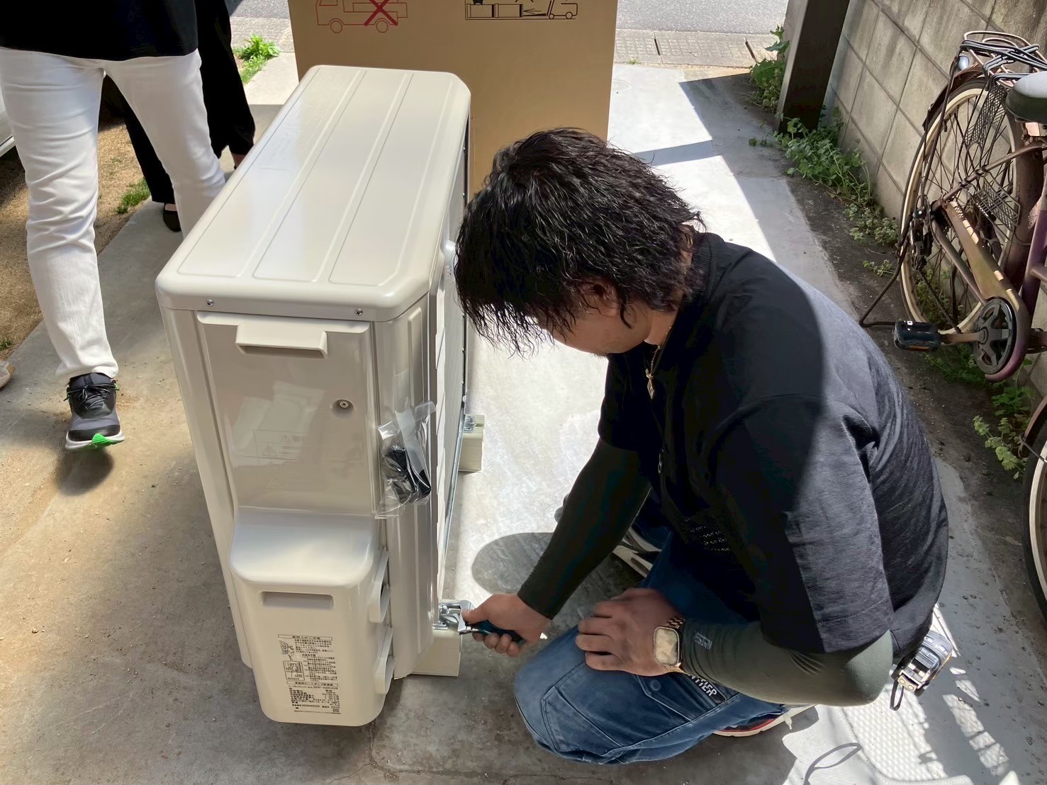 大気中の熱を吸収し、その熱を「冷媒」で圧縮して高温にする技術のこと。少ない電力で効率よくお湯を沸かせる、まさにエコな心臓部なんです。準備もバッチリ完了!