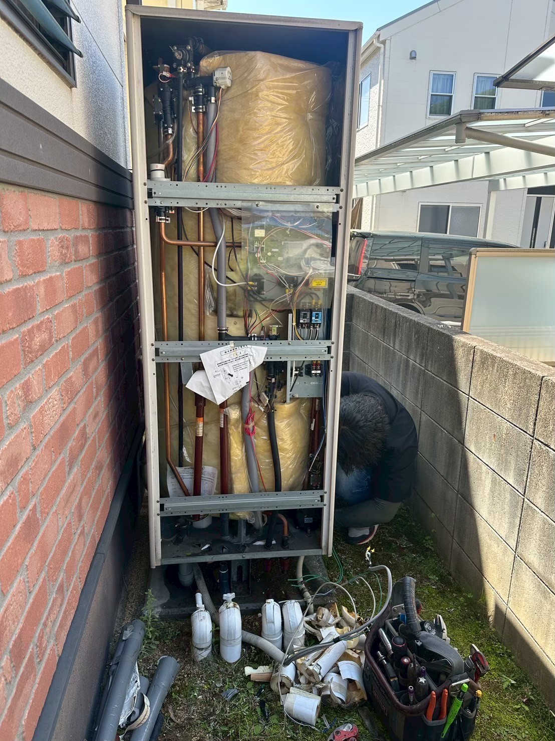 イマガワリフォームのスタッフです✨本日は、長年ご家庭を支えてきた電気温水器を、最新のエコキュートへ交換する現場にお邪魔しました!