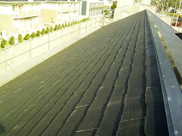 スレート屋根です。経年により色褪せが目立ってきているので、ピカピカにしたいとのことです。