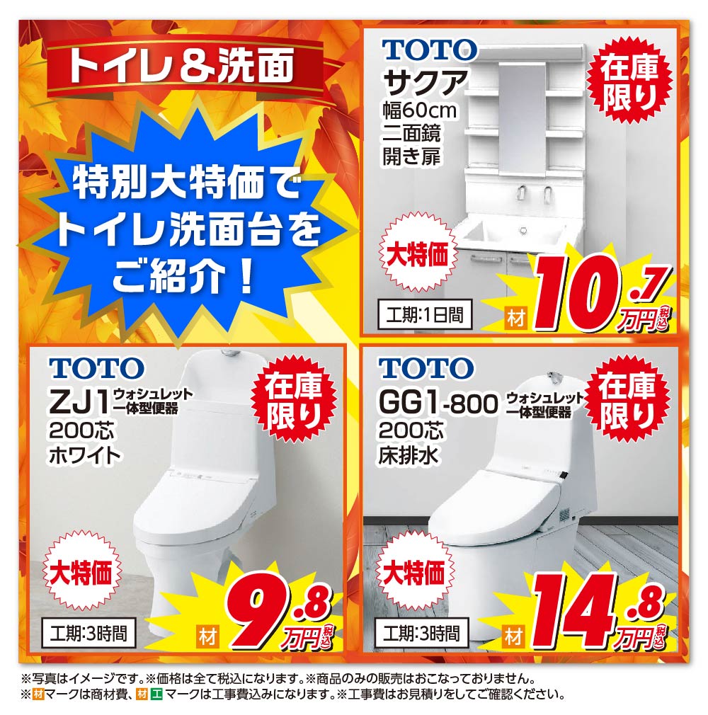 ■トイレ&洗面台を特別大特価でご紹介!