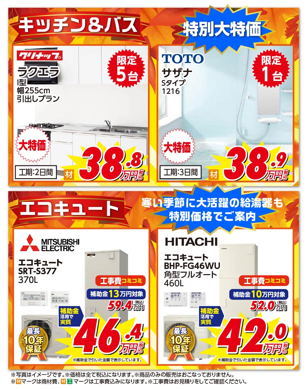 ■寒い季節に大活躍!給湯器も特別価格!