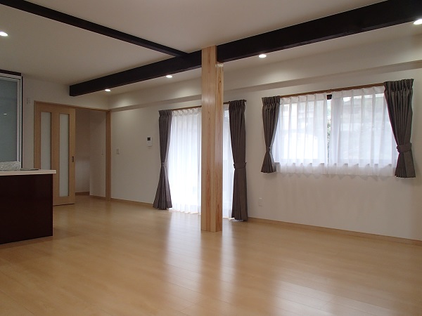 間仕切壁を撤去し、構造材の梁などは残してあります。