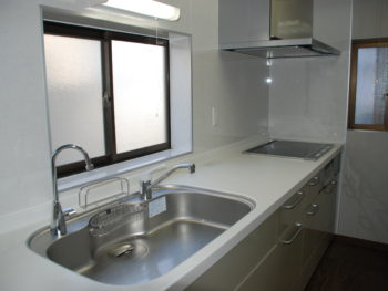 キッチンは長年使ってこられたので新しくします。 また、お風呂の隣にあったので間取り変更を行いました!