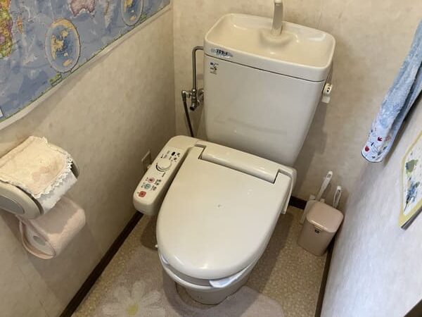 また、今回は壁紙を白、床材はベージュのクッションフロアに張り替え、空間全体を明るく清潔感のある印象に仕上げました。白を基調にすることで、汚れにも気付きやすく、きれいな状態を保ちやすいトイレ空間になっています。