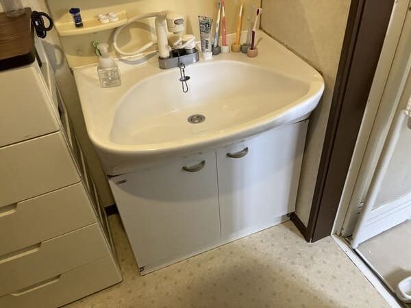 また、洗面台本体の収納スペースが限られているため、化粧品や日用品などがカウンター周辺に出やすく、使いづらさを感じておられるご様子でした。