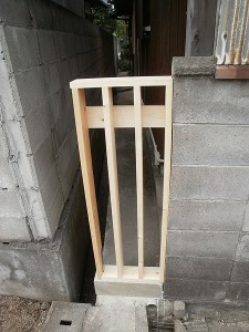 施工途中の写真で申し訳ありません。防犯のために、入り口をふさいで欲しいとの事でした。予算を掛けずにして欲しいとのご依頼でありました。